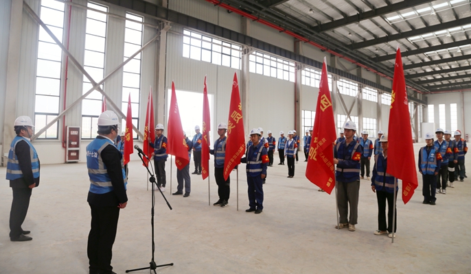 授旗仪式上,笪义青书记为郑蒲港片区B组团项目授予“党员突击队”、“团员突击队”旗帜,为为郑蒲港片区A、C、D组团项目授予“党员冲锋号”、“团员冲锋号”旗帜,各组团项目经理、团支部书记分别代表党团突击队、冲锋号庄严宣誓并作表态发言,表示全体党员、团员青年将冲锋在前、勇担重任,不辱使命、不负重托,牢固树立大局意识与责任意识,在公司的坚强领导下,克服困难、全力以赴,加快工程建设进度,为确保实现上半年“双过半”目标贡献力量。