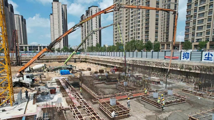 筏板作为基础工程最重要的组成部分,直接影响上部结构稳定。浇筑前,项目组织编写大体积混凝土专项施工方案,召开方案、技术交底会,对现场工人进行交底。为确保连续浇筑、控制浇筑质量,提前协调商砼搅拌站,确保混凝土供应,从质量控制、安全措施、劳动力组织、后勤保障等方面做足充分准备,保证筏板顺利浇筑。项目部将坚定“一创两最五强”奋斗目标,优化施工技术、加强安全管理,确保工程质量创优、进度可控、安全托底,全力完成各项节点。