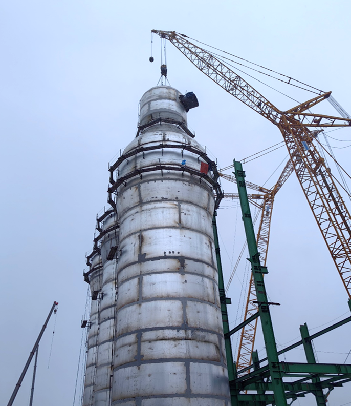 高炉热风炉作为高炉炼铁过程中一个关键的热能供应工艺设备,主要通过燃烧燃料产生高温热风,然后将其输送到高炉中,从而实现炼铁目的。自10月1日项目1#高炉炉壳封顶以来,项目团队以安全和质量为基础,克服场地小、吊装难以及连续降雨等困难,优化施工各工序作业布置、合理安排夜间施工,最终提前15天完成3#热风炉封顶任务,为后续炉内炉窑耐材施工奠定坚实基础。