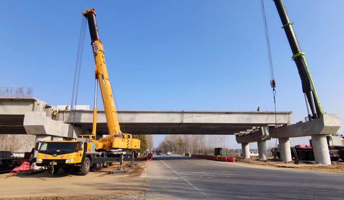 山东济微高速三标项目跨S326省道梁板架设
