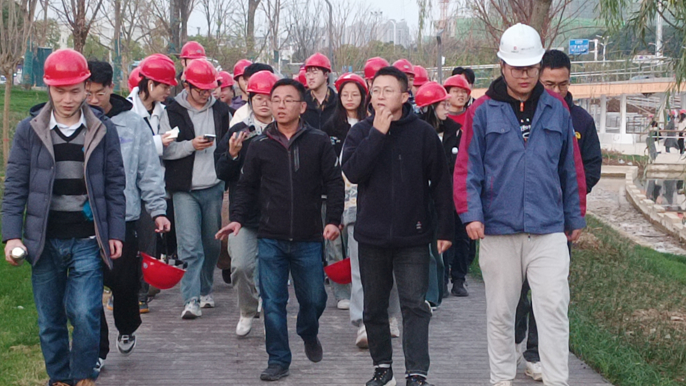 在进行安全交底后,师生们有序进入项目现场,项目负责人详细介绍了十七冶企业概况、发展历程以及项目建设进展。在项目现场,师生们参观了“阳湖十二景”,详细了解了项目施工、管理亮点,深入学习了项目相关的水环境治理等领域专业知识。大家表示,通过此次“实践课堂”,对项目践行“源头减排、过程控制、末端调蓄”的全过程雨水管控体系等设计巧思与前沿技术有了更实际的了解,对行业发展形势与工作内容有了更直观的认知。