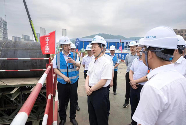 郄英才书记一行深入施工现场,认真听取了项目负责人关于工程概况、施工进度、安全质量等方面的工作汇报,详细了解了项目后期施工计划,对项目现阶段取得的建设成果给予充分肯定。郄英才书记指出,十七冶项目团队要发挥自身优势,强化安全、质量管理,切实落实工程进度,主动协调解决项目建设中的突出问题,各级主管部门、建设方要加强沟通协调,解决项目存在的问题,积极推进央地共建EOD项目建设进度,在确保安全质量的基础上争创“鲁班奖”。