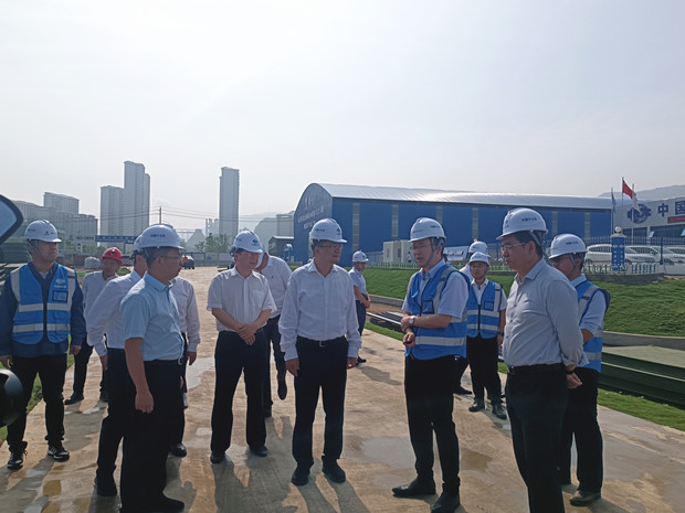 在调研现场,吴之凌市长参观了黄石EOD项目钢筋集中加工中心,对项目的集约化、规范化施工高度认可。随后吴市长一行深入磁湖大桥工程施工现场,认真听取了项目部关于施工质量、安全环保等方面的工作汇报,并详细了解了磁湖大桥的施工进度。他对项目现阶段取得的建设成果给予了高度的评价,对黄石EOD项目部高效的施工组织能力表示赞赏,希望项目部能保持央企优良作风,再接再厉,和黄石市共塑“央地共建”服务品牌。吴之凌市长强调,磁湖大桥工程既是黄石市2023年度重点工程,也是十七冶争创全国“鲁班奖”的品牌项目,各职能部门要切实压实责任,在涉及资金投入、属地人员拆迁、工期推进、施工噪声处理等环节,要加强沟通协调,做好要素保障;项目团队要以时不我待的责任感和紧迫感,加强施工资源投入,锚定工期节点,挂图作战,集中精力大干快上,努力打造精品优质工程。