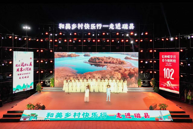 为庆祝建党102周年,6月30日晚8点,中共磁县县委、人民政府及中国农业电影电视中心共同举办的大型文艺演出特别节目《和美乡村快乐行——走进磁县》在开河马头上演。中国十七冶项目团队作为磁县高质量发展的建设者与见证者,受邀登台演出。