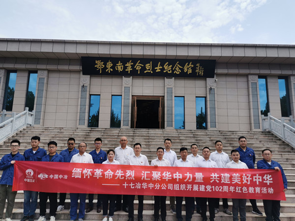 为庆祝中国共产党成立102周年,深入学习贯彻习近平新时代中国特色社会主义思想和党的二十大精神,推进基层党建工作迈上新台阶,7月3日,十七冶华中分公司党总支赴湘鄂赣边区鄂东南革命烈士陵园开展纪念革命先烈活动。党总支书记孙亮、副书记张丽等领导班子成员,机关、项目党支部全体党员、团员青年、业务骨干共20余人参加。