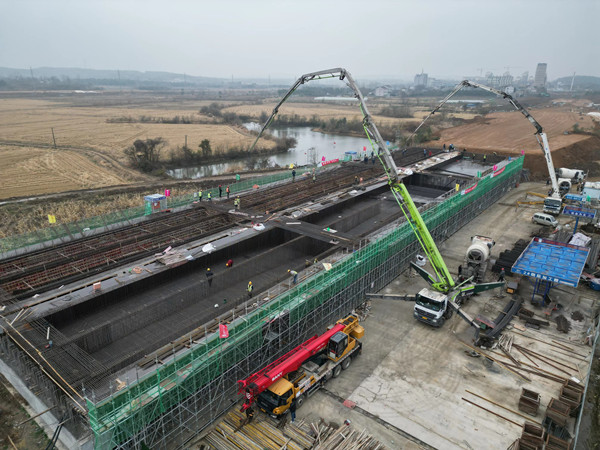 12月13日上午,由中国十七冶建安分公司承建的龙亢路西延伸及创业大道项目龙亢二桥现浇连续箱梁右幅混凝土浇筑。