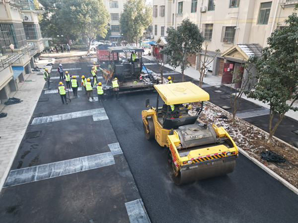 为高质量推进沥青混凝土摊铺作业,分公司及项目部在施工前认真组织、精心策划,对沥青混凝土供应商进行多次实地考察,并在施工时安排专职人员核查沥青混凝土出厂温度、油石比等,从源头把控质量,根据现场实际情况确定摊铺顺序,做好与旧沥青路面搭接缝的处理,并调整路口封锁,确定人员、车辆引流方案。随着摊铺机、压路机的缓缓前行,原本破旧的水泥路逐渐被崭新的沥青路面覆盖,施工现场一幅热火朝天的建设画面,一条条崭新、平坦的道路呈现在了居民们面前,不仅提升了道路品质、改善了群众出行条件,小区颜值也“大变样”,获得了小区居民的点赞。