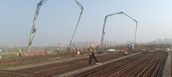 项目部通过提前计划部署、合理安排工期、加大施工安全教育等方式确保工程如期进行;领导干部坚持带头到一线、恳切交谈到班组发现问题,与员工心贴心交流,身体力行解决困难;同时强化项目管理,凝心聚力共同营造良好施工生产环境。当前,龙亢二桥正在进行现浇箱梁底腹板浇筑混凝土施工,工程进展顺利推进。