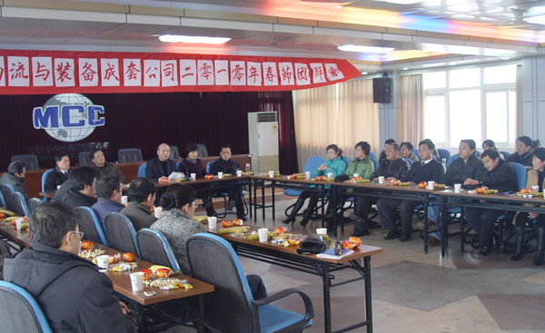 牛蹄奋进勤耕耘,虎插双翼助腾飞。2月8日下午,物流与装备成套公司六楼会议室洋溢着欢乐祥和的喜庆气氛,公司领导、基层部门班子成员及各工会分会主席、机关全体管理人员60多人欢聚一堂,举行2010年新春团拜会,共话发展,共贺新春。公司副经理、工会主席王贤玉主持会议。