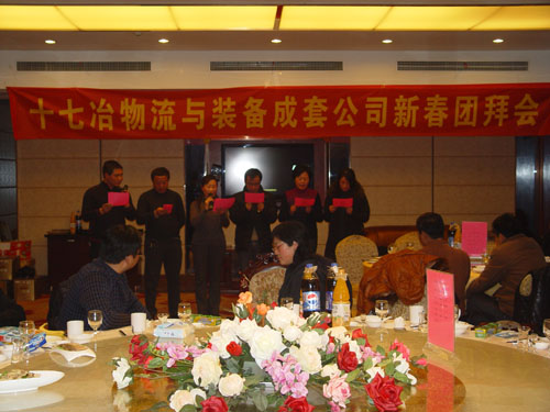 团拜会上,该公司经理崔逊斌发表了热情洋溢的新春致辞;公司领导和基层及机关各部门相互拜年和祝福,大家表示在新的一年里,一定要展现新形象,展示新风采,把物流公司做强做优。之后的文艺联欢会上,总会计师黄新亮一首《期待》使大家期盼着物流公司在新的一年再上一个新台阶。