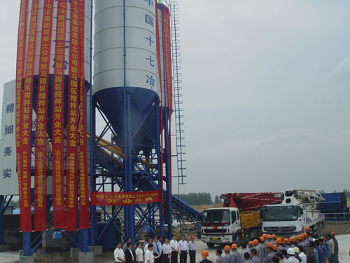 在喜庆的气氛中,中国十七冶集团总会计师章宏金宣布:中国十七冶宿马现代产业园混凝土搅拌站开业!顿时,礼花齐放、鞭炮齐鸣、机械声、欢呼声响成一片,这种喜庆预示着宿马园区商品砼搅拌站红红火火的未来前景。